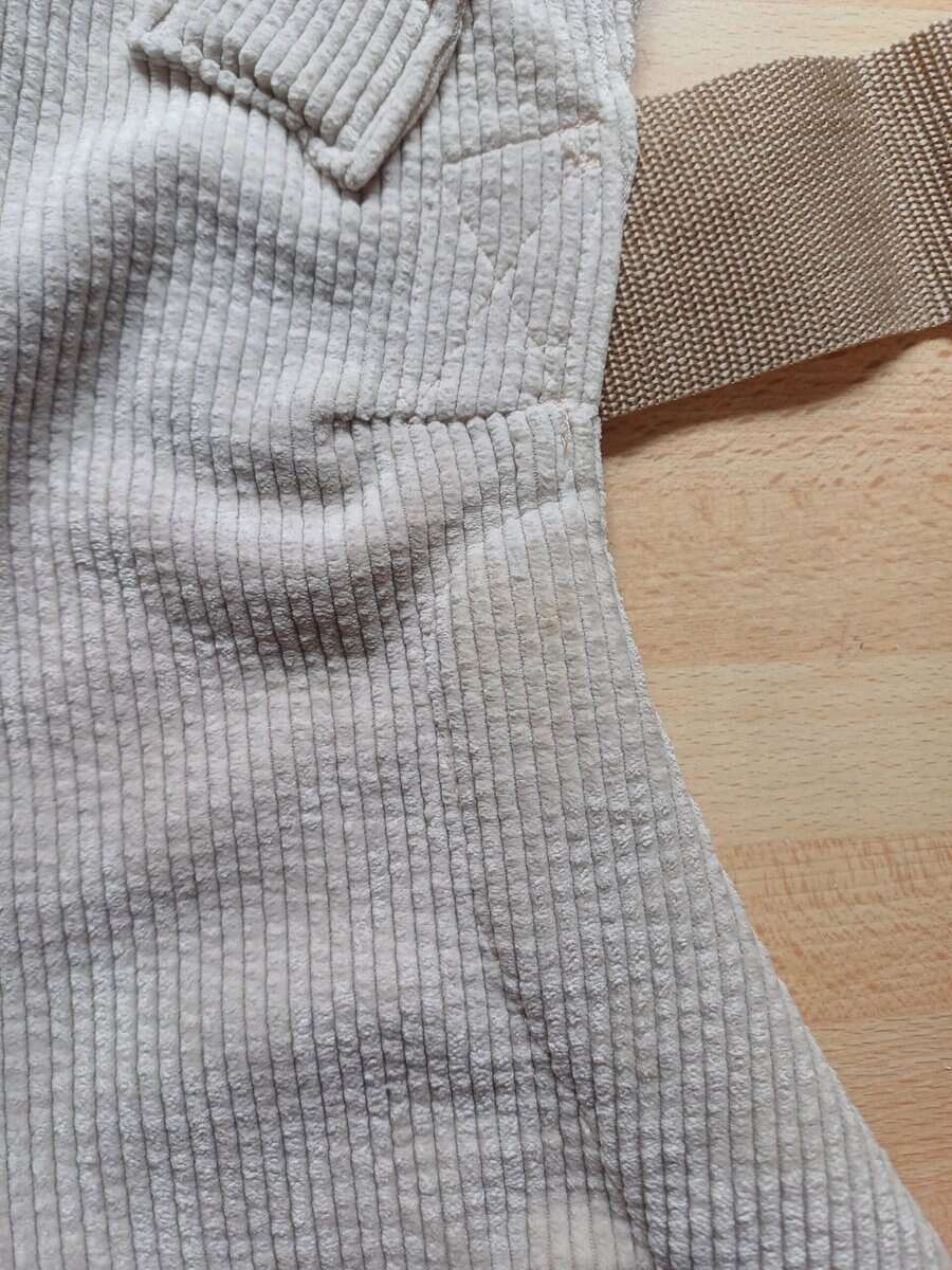 De breedte van de draagzak, voor een ergonomische M-houding met ondersteuning van knieholte tot knieholte, is maximaal 40cm. Dit is traploos te versmallen tot 20 cm, door de stof over de buikband te verschuiven.