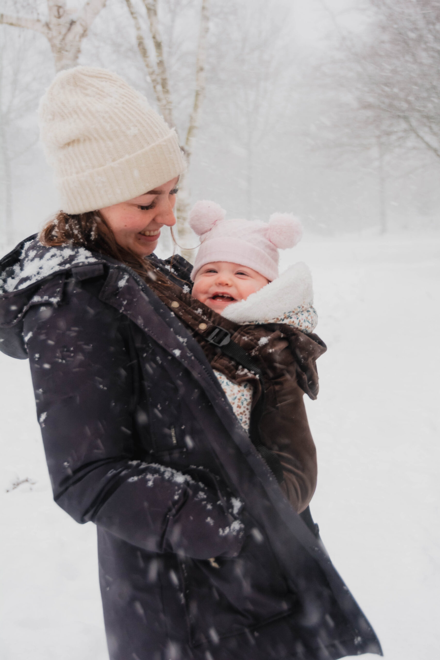 • Plaats de buikband ter hoogte van je taille (niet te laag) zodat je jouw kindje een kus op het hoofd kunt geven.